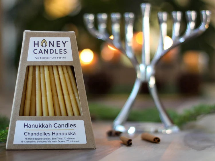Our Beeswax Menorah Candles are crafted with 100% pure Canadian beeswax, providing a clean, long-lasting burn. These candles are free from harmful chemicals and offer a natural, eco-friendly alternative for celebrating Hanukkah. With a subtle honey scent and a warm, golden glow, they create a beautiful and safe atmosphere for your holiday traditions.