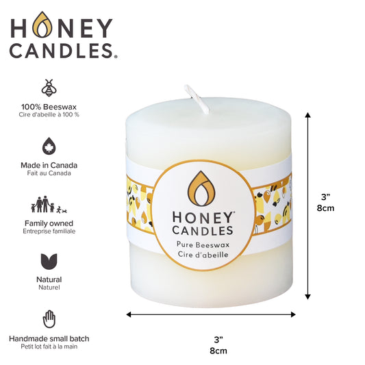 Honey Candles offers a premium variety of dripless beeswax candles made of pure beeswax sourced from trusted North American beekeepers. We never use paraffin, additives, or artificial scents, just nature’s finest wax and cotton wicks.