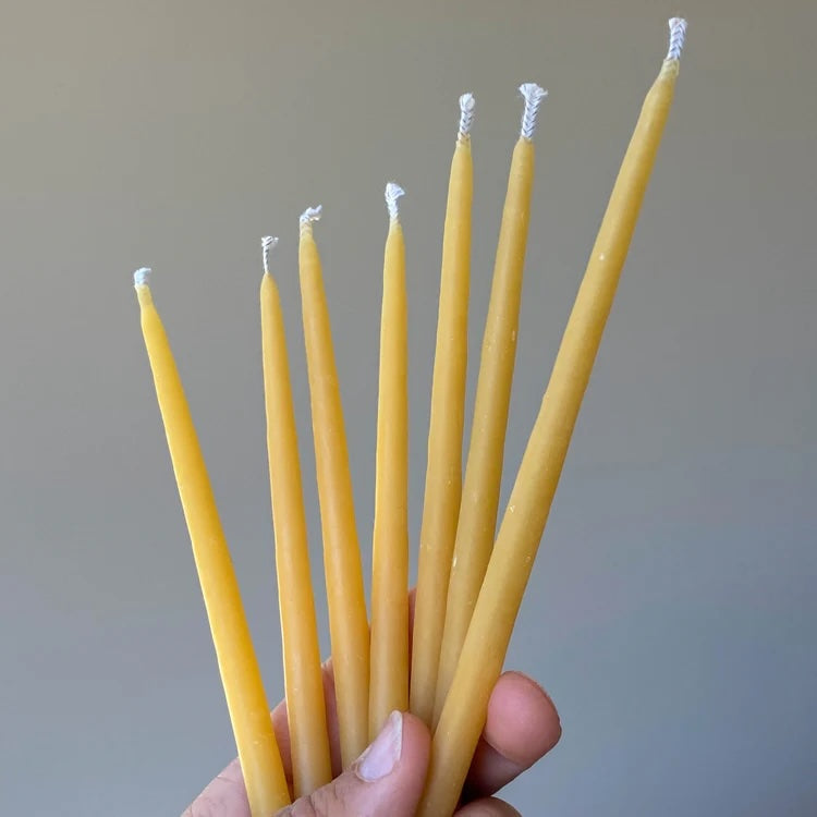 7 Pack of 6 Inch Natural Beeswax Thin Tapers