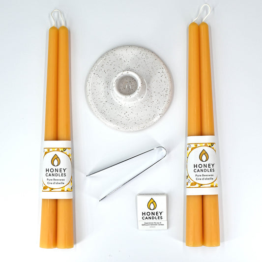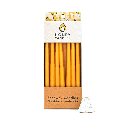 For over 25 years, Honey Candles has crafted some of the most trusted beeswax tapered candles in North America. Each candle is made without toxins or additives — just 100% pure beeswax and natural cotton wicks for a clean, steady burn.