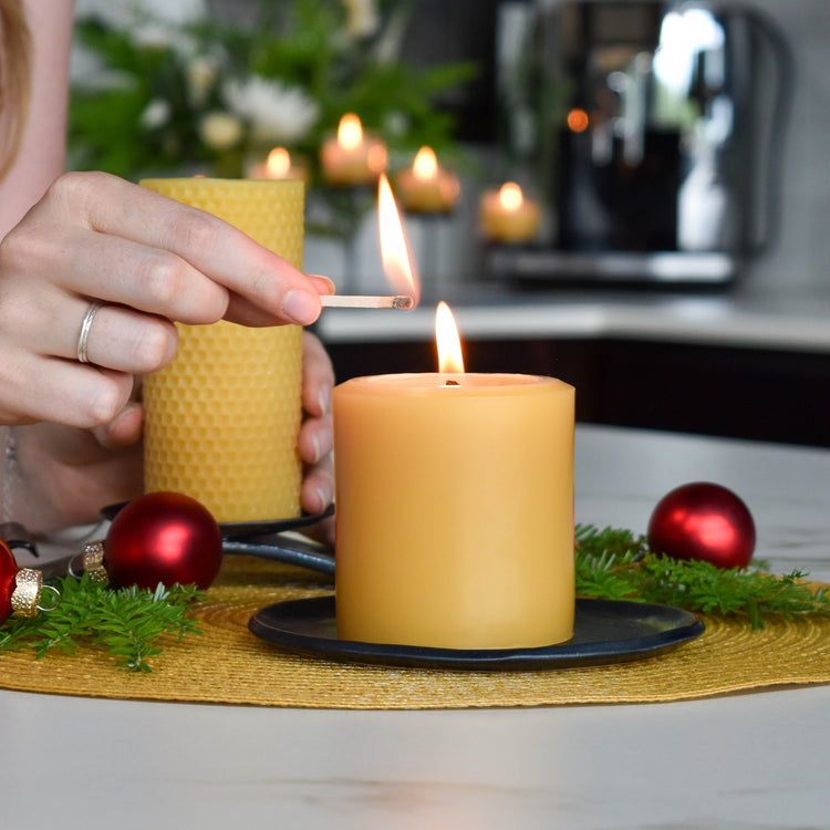 Natural Beeswax Heritage Drip Pillar Candle